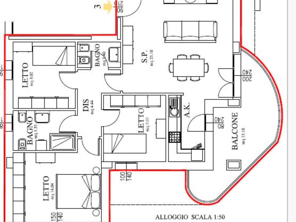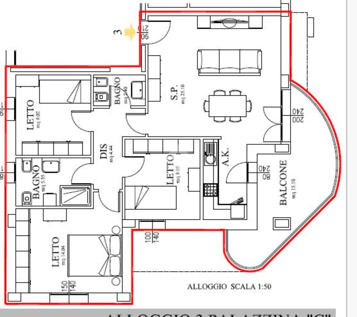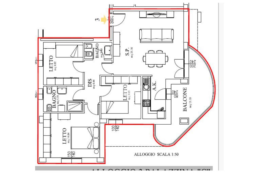 Accediamo alla soluzione tramite un comodo ingresso che sfocia sull'ampia zona giorno dove troviamo la zona relax e pranzo, cucina a vista con accesso al balcone abitabile, disimpegno, 2 bagni con doccia, 3 camere da letto di cui una matrimoniale.