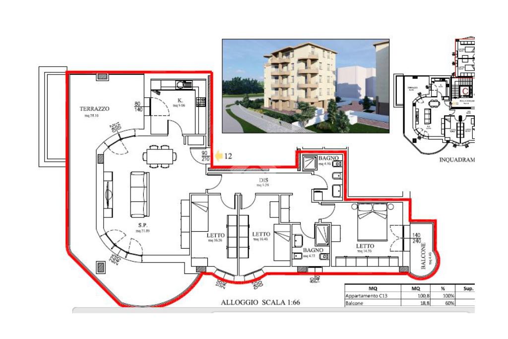 L'immobile proposto si trova al quarto piano, in un contesto esclusivo e in palazzina di sole 13 unità servita da ascensore.