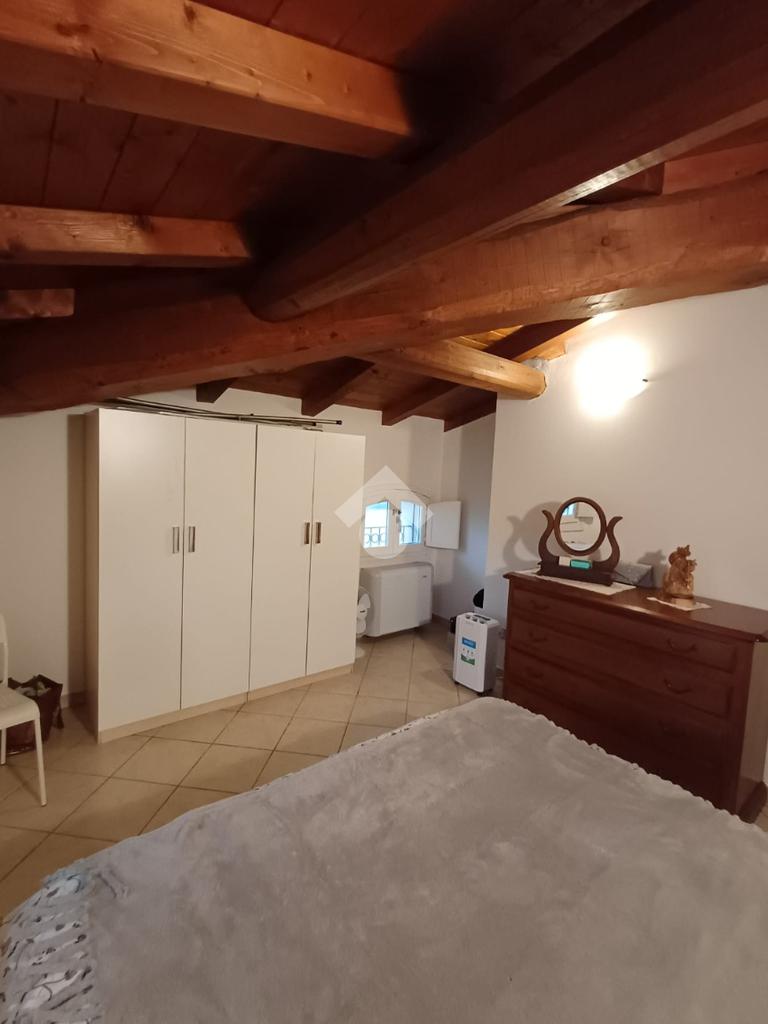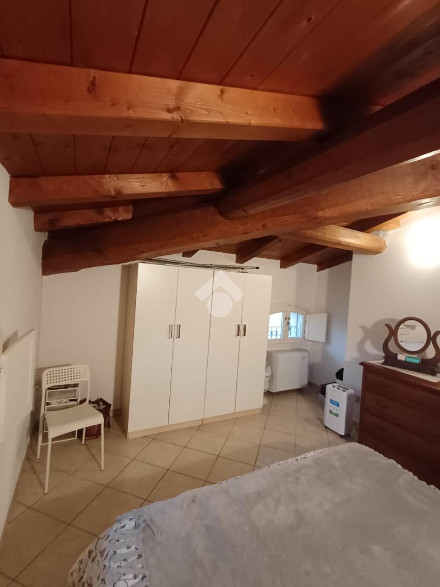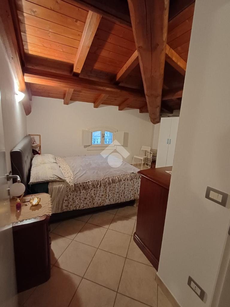 In tutto l'appartamento troviamo le travi a vista.