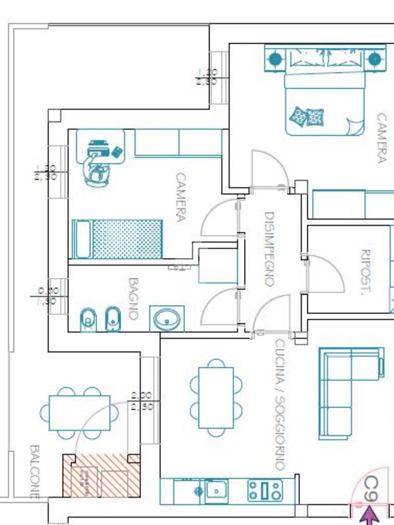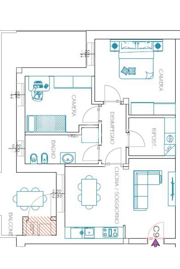 Accediamo alla soluzione tramite un comodo ingresso che sfocia sull'ampia zona giorno dove troviamo la comoda zona relax e pranzo con cucina a vista e ampia vetrata che permette l' accesso al terrazzo, disimpegno , bagno con doccia, comodo ripostiglio con angolo lavanderia e due camere da letto.