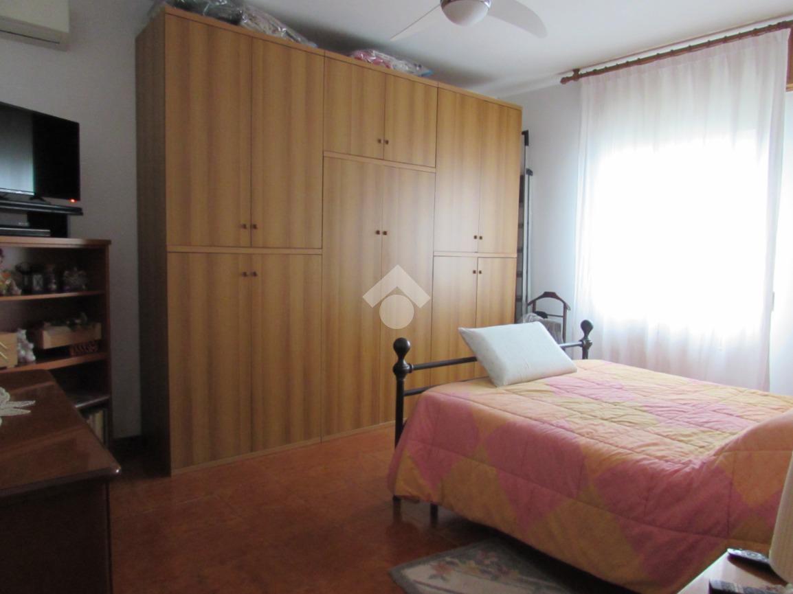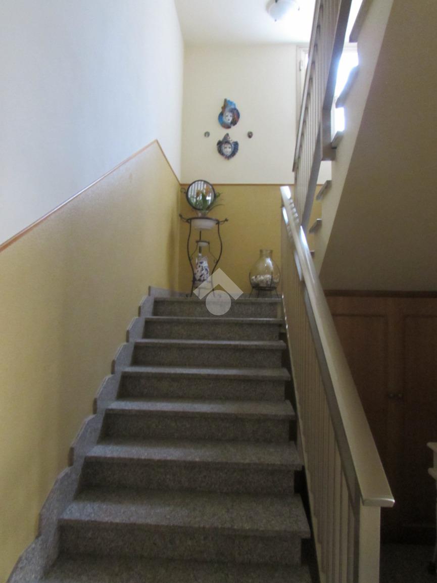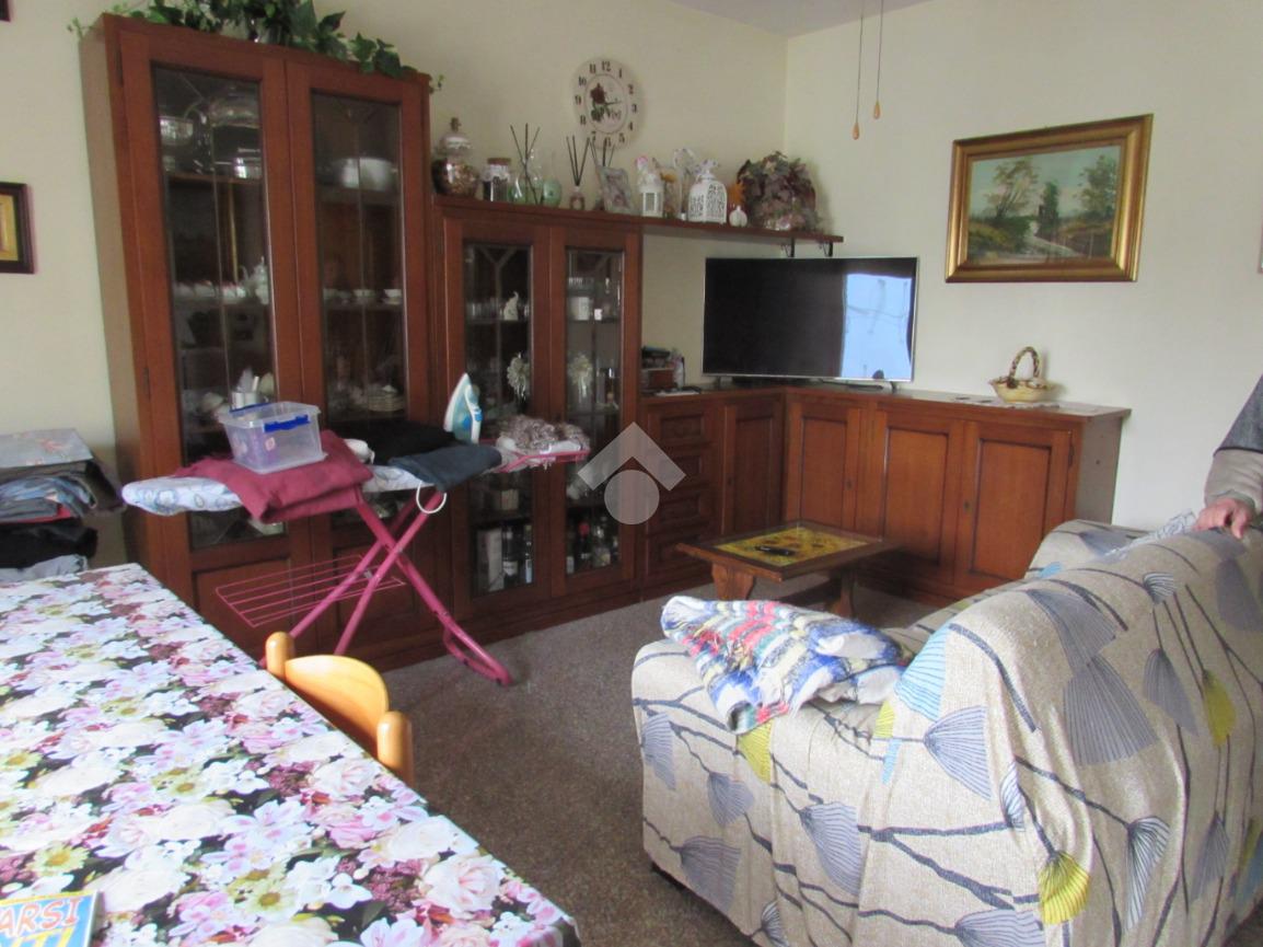 L'appartamento si trova al primo piano di una palazzina anni 80 composto da cucina, soggiorno, balcone, tre camere, due bagni. Completano l'immobile area cortiliva e posto macchina nell'area adiacente.